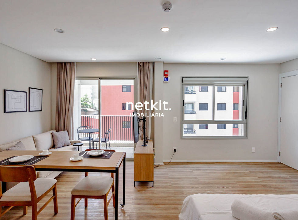 Unidade próxima à Avenida Paulista e em frente ao Hospital Sírio Libanês. Sala integrada à varanda, com ar-condicionado já instalado. Dormitório confortável com armário planejado. Cozinha equipada com geladeira, micro-ondas, cooktop, coifa e armários. Banheiro com gabinete, box e chuveiro a gás. Fechadura digital, teto em gesso e luminotécnica pronta.