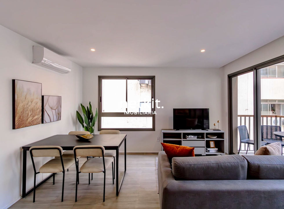Unidade próxima ao metrô Oscar Freire e da Av. Rebouças. Sala integrada à varanda, com ar-condicionado já instalado. Dormitório confortável com armário planejado. Cozinha equipada com geladeira, micro-ondas, cooktop, coifa e armários. Banheiro com gabinete, box e chuveiro a gás. Fechadura digital, teto em gesso e luminotécnica pronta.